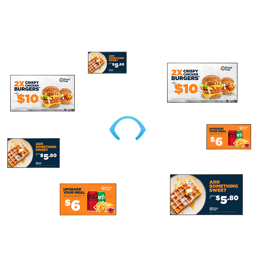 Coordinate multiple screens to show the same content at the same time. This is perfect for creating unified, eye-catching displays across large areas.